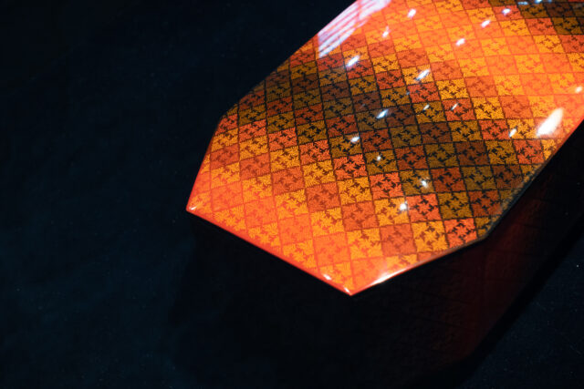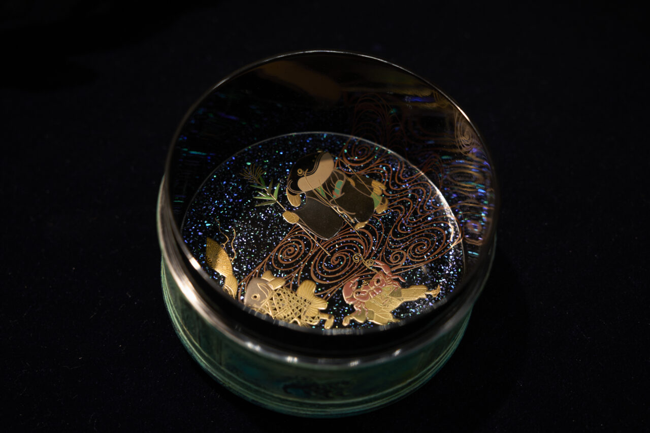 近年、テクノロジーと工芸の融合による新たな表現に注目する動きがある。石川県金沢を拠点に活動する池田晃将さんは、まさにそのような現代工芸を牽引する存在と言えるだろう。情報に溢れたデジタル世界を思わせる池田さんの螺鈿作品には、最先端のレーザー機器が用いられている。人の手ではできなかった極小のパーツをレーザーで切り出し、それらを一つひとつ手作業で配置して制作しているそうだ。池田さんは、「効率主義の社会の中で、手で作り時間をかけるということに一体何の意味があるのか。この先どんな役割を果たしていけるのか。それはこれからも常に考えていきたい」と今後に向けた決意を語った。