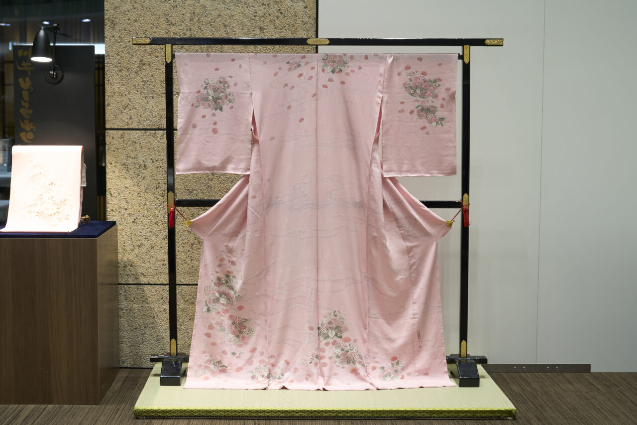 加賀友禅作家である久恒さんは、新品の着物がなかなか売れない時代に活路を見出すべく、染めの原点に返ってみようと、草木染めへの挑戦を始めた。草木染めの魅力は、やはりその色の奥深さだろう。しかし植物染料は元来、堅牢度では化学染料に劣る。幾度も失敗を繰り返しながらも、北陸先端科学技術大学院大学の研究室と新たな植物染料の共同開発を進め、ついに安全性と堅牢性に優れた植物染料を開発することに成功した。短時間で常温でも色を定着させられるため、それまで植物染料では不可能だった加賀友禅での筆彩色が実現。長く続いてきた化学染料による水質汚染問題の改善に至ったことも、審査員から高く評価されたポイントだ。久恒さんは「(今回の受賞が)多くの方にこの技術を見ていただくきっかけになると思います。これからも工房でみんなと一緒に精進して、草木染めというものを広めていきたいと思っております」と語った。