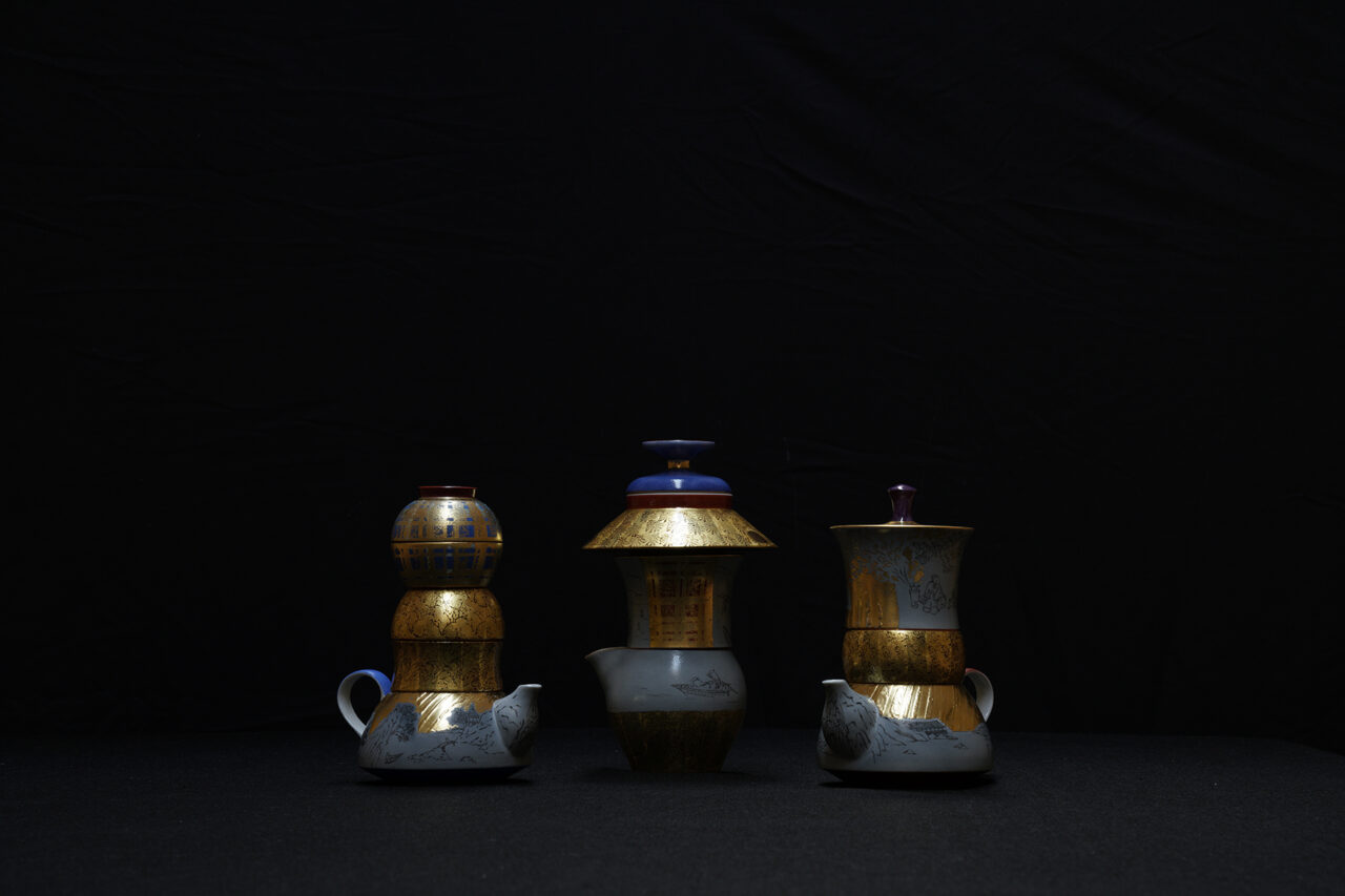17世紀以降、石川県南部を中心に発展してきた歴史を持つ九谷焼は、五彩を駆使した色絵や金彩をあしらった金襴手など、色彩豊かで華麗な絵付を特徴とする。石川県小松市高堂町にある錦山窯は、創業115 年の歴史を誇る、九谷焼上絵付を専業とする窯元だ。特に同窯が代々得意としてきた金彩の技法を活かした作品が人気を博している。