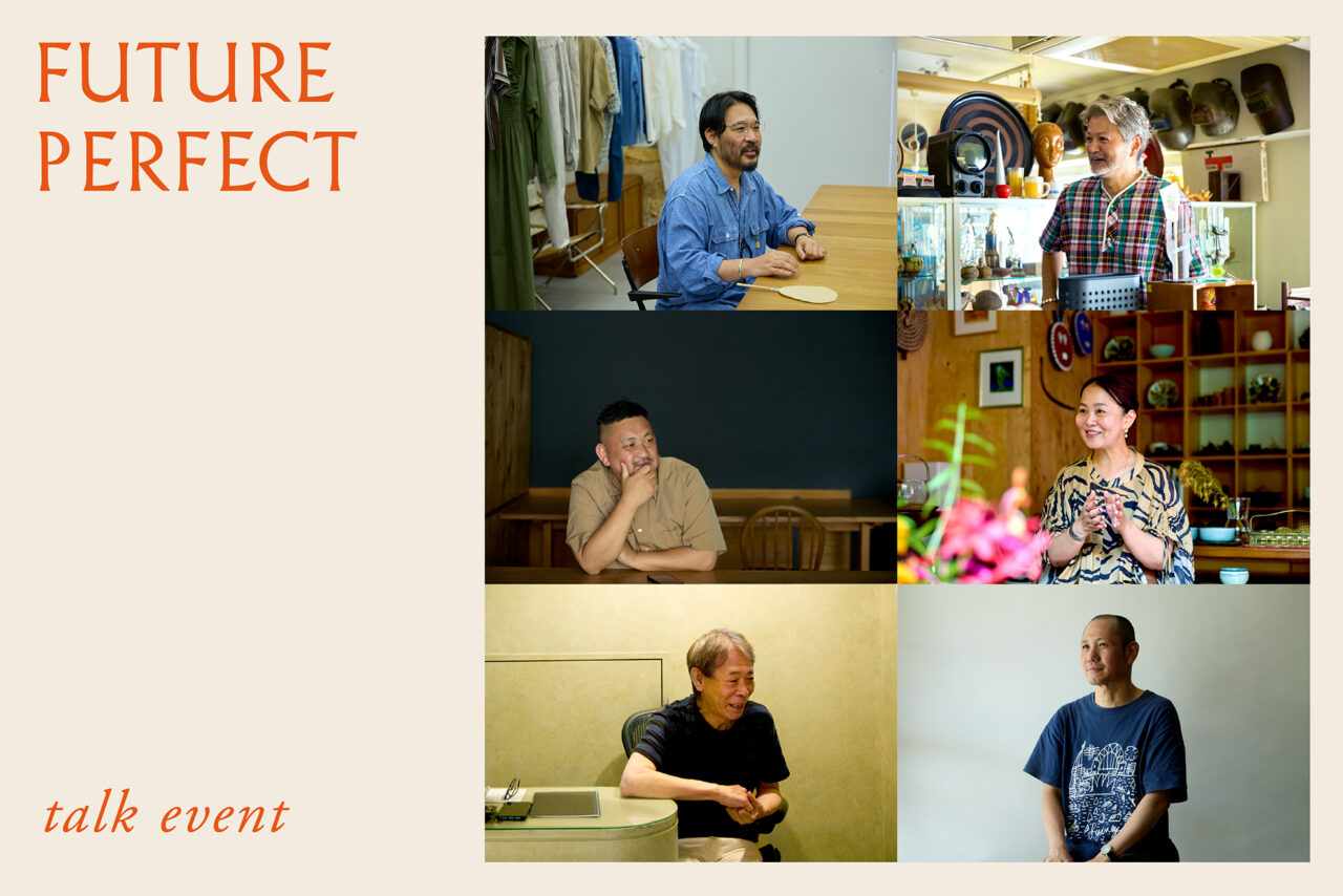 イベントタイトルとなっている「Future Perfect=未来完了」という言葉には、現在の私たちが選択するものや考えが、これからの豊かな未来につながっていくという思いが込められている。5人のショップオーナーがそれぞれの視点でセレクトした作品はいずれも個性豊かで、来場者に驚きや感動を与え、時にくすりと笑わせてくれるユーモアを提示してくれるだろう。期間中に開催されるトークイベントでは、参加メンバーと編集者・井出幸亮が、「工芸」を手掛かりに、それぞれの考える自由で奥深い、豊かな世界を紐解く。