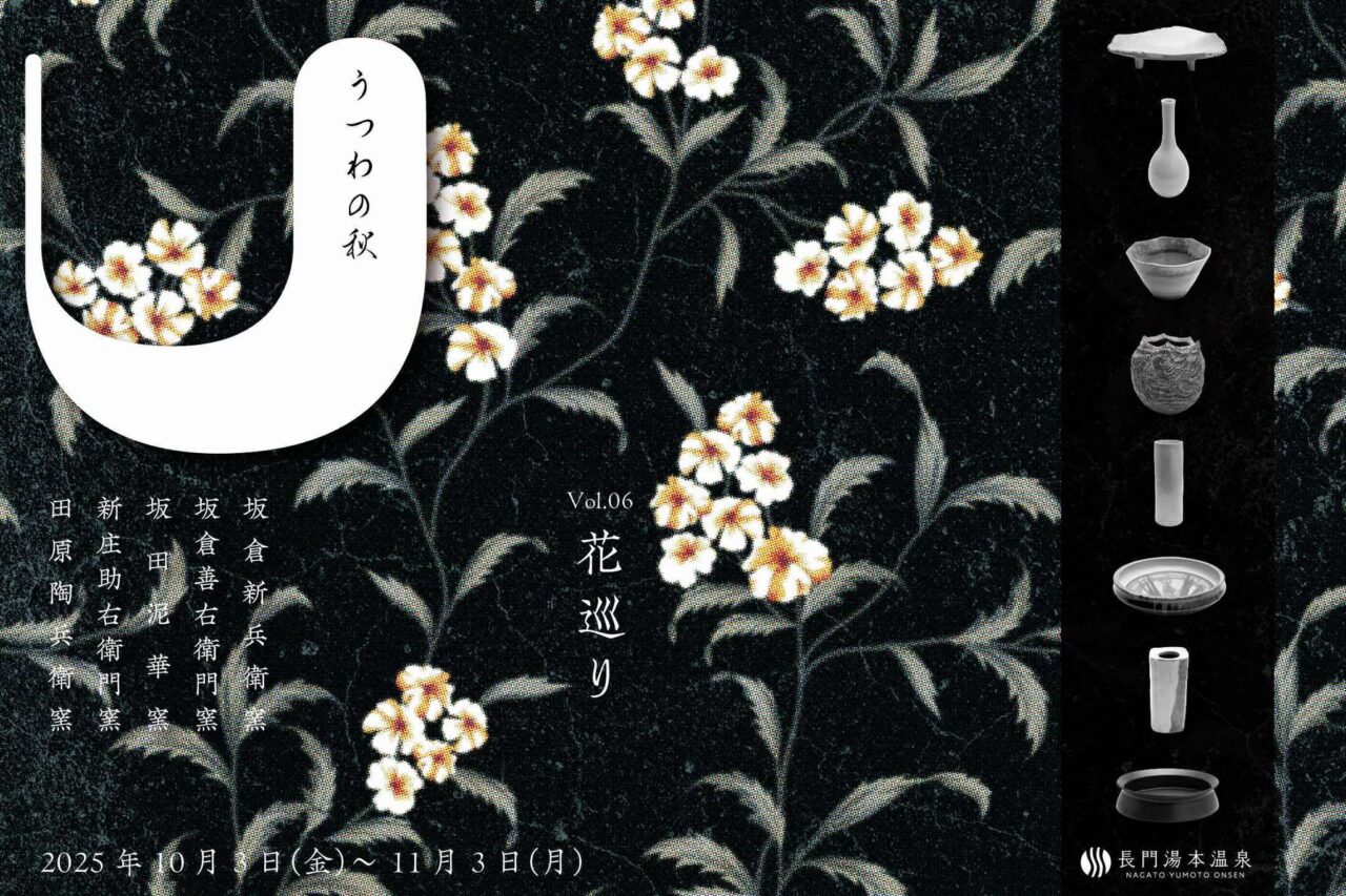 2020年のリニューアル以降、温泉街を楽しめるまちづくりに取り組んでいる山口県の長門湯本温泉。この秋も深川窯の全5つの窯元、8人の作家が長門湯本温泉街に出展し、三ノ瀬に息づく萩焼文化を温泉街で体験できるイベント『うつわの秋』が2025年10月3日(金)~11月3日(月)の期間開催される。第6回目となる本年のテーマは「花巡り」。街歩きをしながら花の彩りと萩焼の魅力を満喫できるイベントが多数予定されている。
