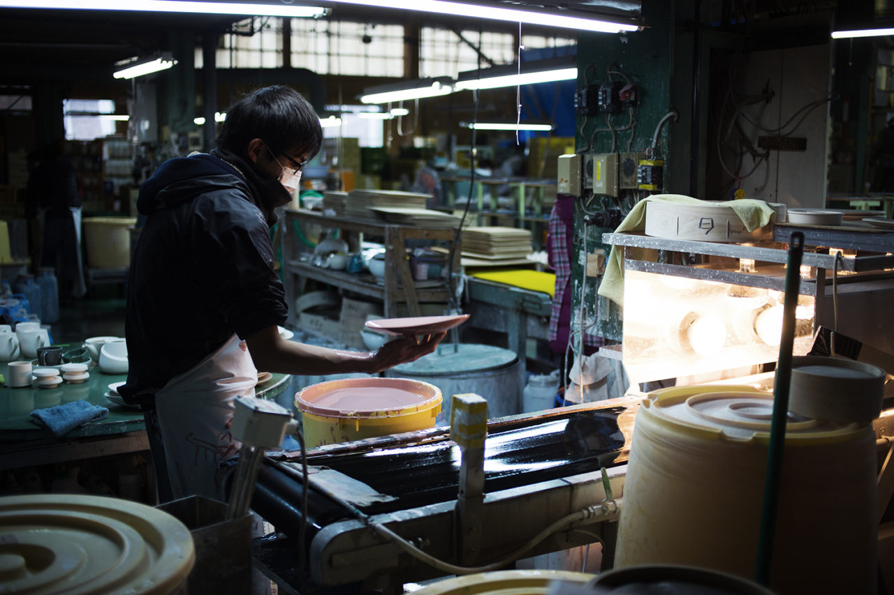 色原さんは、暮らしに寄り添う陶磁器に惹かれ、岐阜県内の「多治見市陶磁器意匠研究所」への門を叩き、その後2015年に(株)深山に入社。「自分がいいと思うモノづくり、それによって人の生活を少しでも豊かにしたい」と言う。深山のある岐阜県瑞浪市は、若者離れが進む町だが、日本一の生産量を誇る美濃焼に憧れ、県外からこうして就職を希望する若者も少なくない。色原さんも、高知県より、ここ深山に辿り着いた。