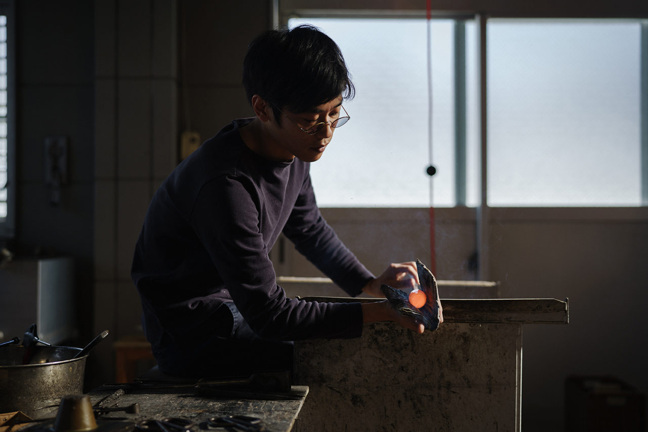 光井威善さんは、広島県出身。子供の頃から、図工や体育が好きだったという。ものづくりへの興味から大学で工芸を専攻し、なかでも最も複雑で難易度が高いと感じたガラス作りに興味が深まっていった。