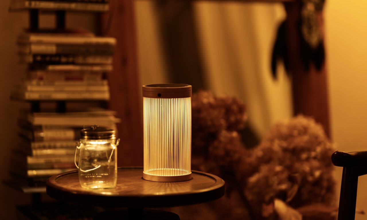 素材:竹、ウォルナット材(底部)、SOMOソーラーライト(ソーラーモジュール)