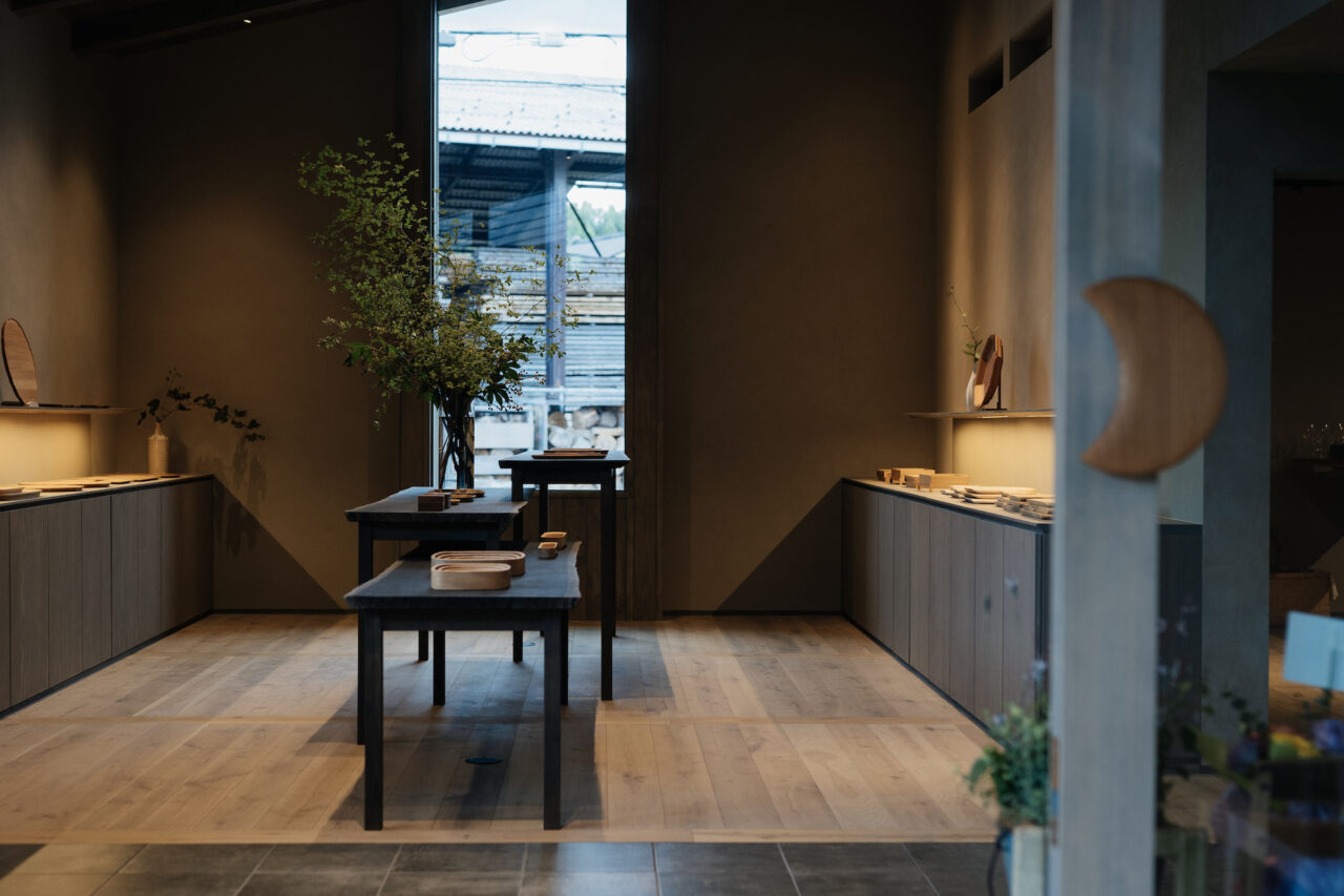 Gallery & Shopのスペースではオリジナルブランドの全製品が揃うほか、色味などの問題で製品化されなかった商品に草木染めを試したものや、節や杢に個性がある一点物など、ここでしか手に入らない特別な品も販売される予定だ。建物内にはキッチンも併設されており、商品の使い方の提案や取り扱いの説明も受けられる。Salon Roomでは木工ワークショップや食と器のイベントのほか、木や森、植林について学ぶセミナー等が開催予定。四十沢木材工芸では製品の源である広葉樹の植林を課題として模索しており、貴重な森林資源や自然について、参加者と山に出掛けて楽しみながら考える試みも将来的に検討している。