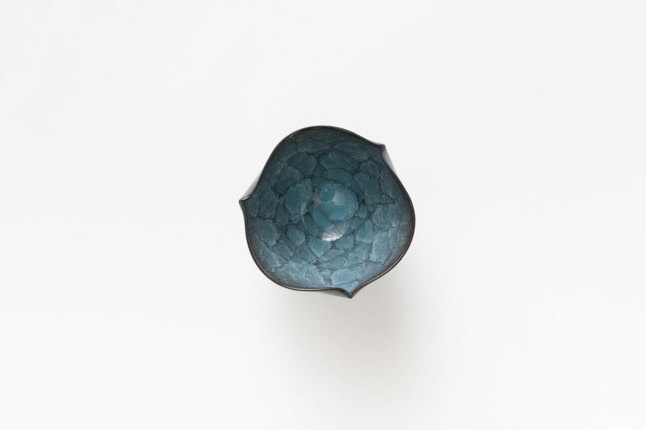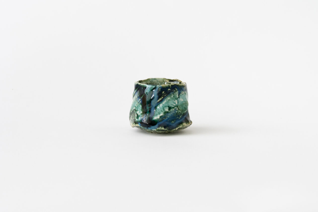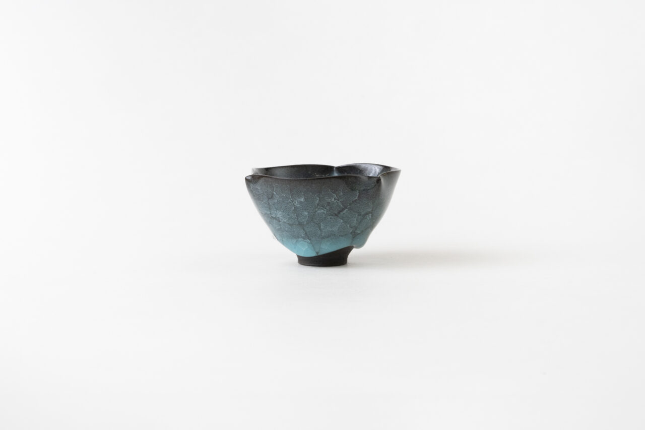 天目や青瓷を手がける作家として、着実に人気を高めてきているのが今泉毅だ。色と姿形の両方の美しさを備え、完成度の高い作品を発表している。夜空を思わせる「窯変天目」は、日本酒を注ぎ込むたびに、長い間眺めていたくなるほどの絶景。もう一つの人気作品である「翠青瓷」は、釉薬が何層にも感じられる深みがあり、特に稜花の形をした作品はすぐに完売してしまうほどの人気ぶりだ。